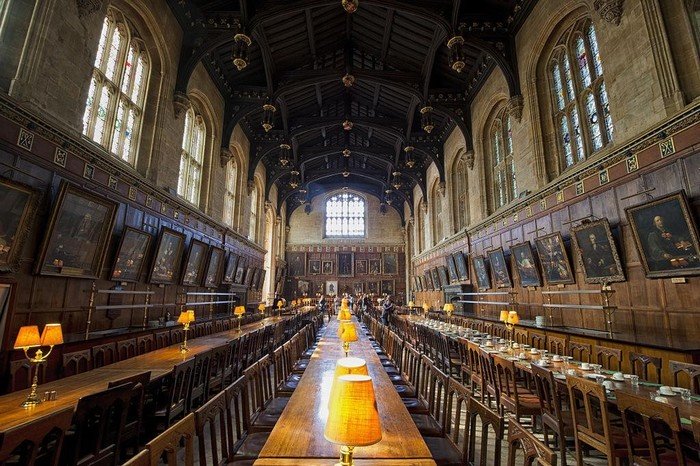 Nếu bạn đã từng ước ao được mặc bộ áo choàng phù thủy và được ngồi trong đại sảnh đường của Hogwarts thì Học viện Christ Church sẽ là nơi bạn cần đến đấy. Đại sảnh đường của Học viện ma thuật và phép thuật Hogwarts chính là nhà ăn của Học viện Christ Church – một thành viên của Viện đại học Oxford danh tiếng. Là một trong những ngôi trường quý tộc bậc nhất trong hệ thống giáo dục khi xưa của nước Anh, với một không gian cổ kính, trầm mặc đầy ấn tượng, phòng ăn của Học viện Christ Church quả thực là một địa điểm lý tưởng để trở thành Đại sảnh đường của Học viện phép thuật Hogwarts danh giá.