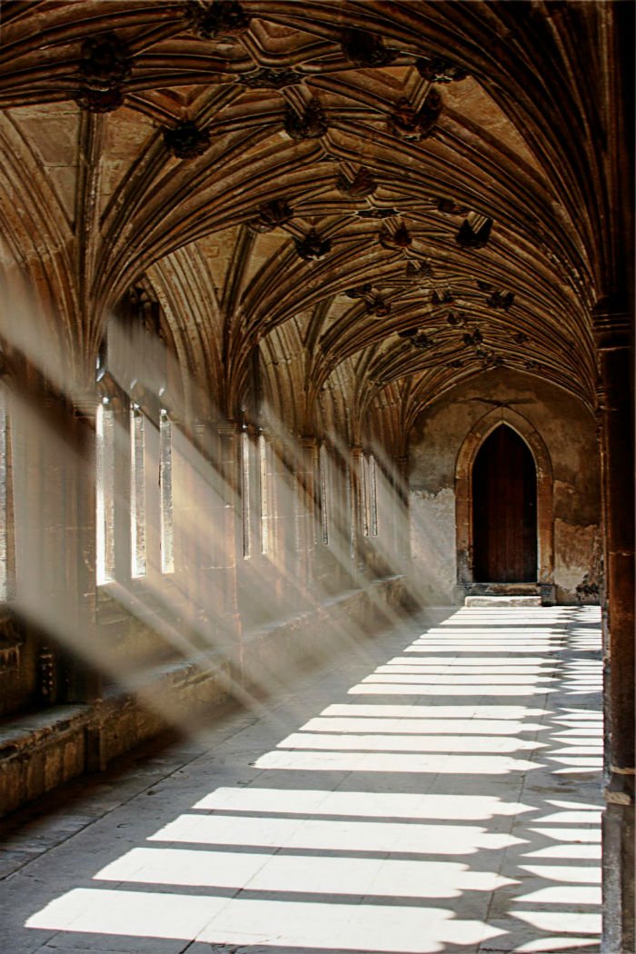 Đã là fan của Harry Potter thì hình ảnh những hành lang heo hút, đặc biệt là hình ảnh hành lang với dấu tay máu trên tường trong tập 2 của Harry Potter – Phòng chứa bí mật thật là một hình ảnh khó thể xóa nhòa trong tâm trí. Dãy hành lang heo hút trong trường Hogwarts đó chính là một phần của thánh đường Gloucester nằm ở Gloucester, Gloucestershire, Anh. Với một lối kiến trúc mang đậm chất Roman Catholic, thánh đường Gloucester toát lên một vẻ đẹp tráng lệ nhưng không kém đi phần cổ kính.