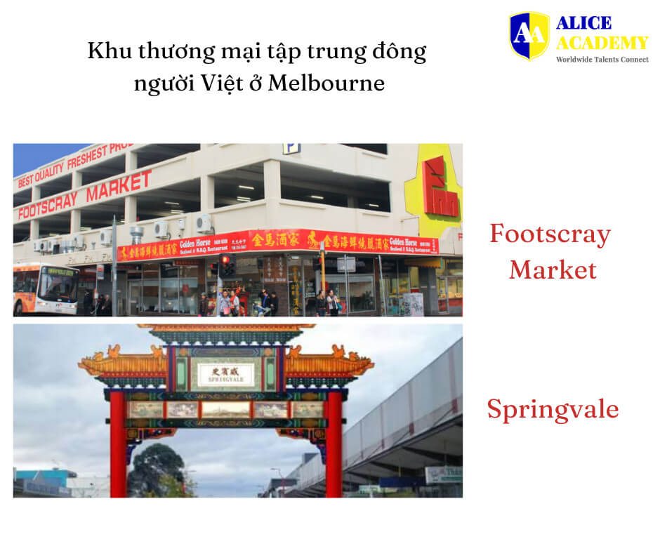 Melbourne là một thành phố đa văn hóa vậy nên không phải ngạc nhiên khi bạn có thể tìm thấy các nhà hàng bán các món từ Châu Âu, Trung Đông đến cả Châu Á. Đặc biệt ở vùng Đông Tây Melbourne, có chợ Footscray là một trong những khu tập trung cộng đồng người Việt đông nhất. Tại đây, bạn có thể tìm được mọi loại đồ ăn thức uống của quê hương (thật tuyệt cho những ngày nhớ quê hương!). Ngoài ra, bang Victoria còn có Springvale cũng lại là một trong những khu tập trung người Việt sinh sống nhiều, vừa kiếm được đồ ăn cho đỡ nhớ quê nhà, vừa gặp nhiều đồng hương cho đỡ cô đơn khi ở nơi đất khách quê người.