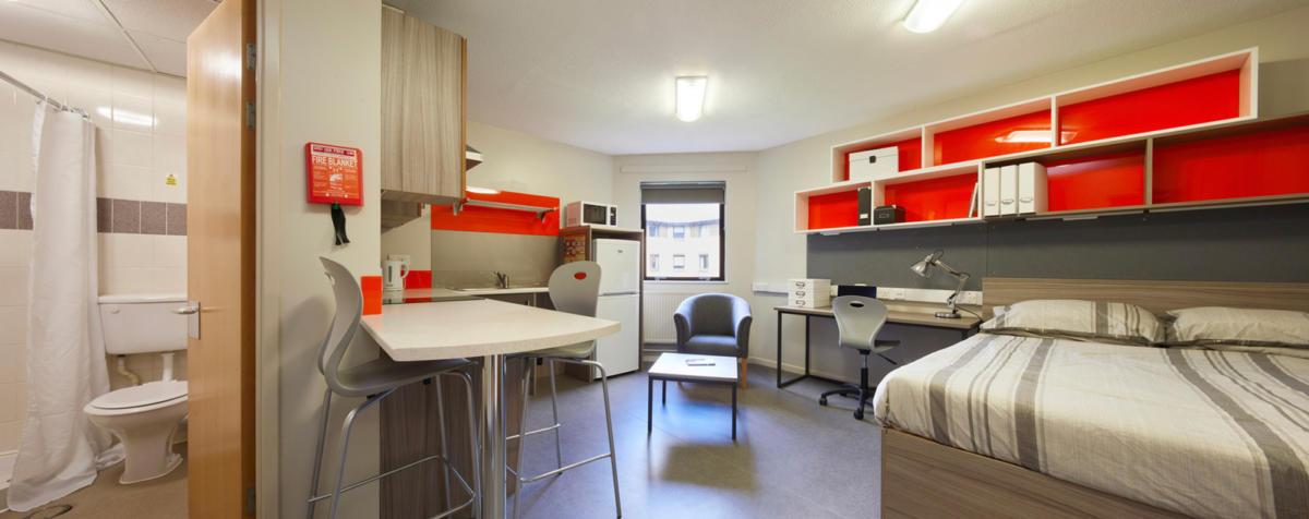 Khu ký túc xá cũng nằm ngay trong campus chính của trường, tiện việc đi lại cho sinh viên. Ký túc xá được thiết kế đầy đủ tiện nghi: phòng ngủ, phòng tắm riêng, bồn rửa tay, nhà vệ sinh, bếp chung, có hệ thống wifi và được bảo vệ 24/24 giờ do nhân viên của trường quản lý. Có nhiều kiểu phòng khác nhau với nhiều mức giá sinh hoạt tương ứng, tùy vào khả năng cũng như nhu cầu sinh hoạt của từng sinh viên mà có thể chọn cho mình không gian ký túc xá phù hợp.