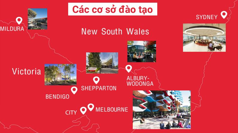 Đại học La Trobe hiện tại đã có 7 cơ sở đào tạo trên khắp nước Úc, lần lượt ở Melbourne, Bendigo, Albury-Wodonga, Mildura, Shepparton, Melbourne CBD, Sydney. Với hơn 39.000 sinh viên đang theo học, trong đó có hơn 7.000 sinh viên quốc tế đến từ 110 quốc gia, 257 đối tác nghiên cứu toàn cầu, Đại học La Trobe là mái nhà chung đa văn hóa, môi trường học tập năng động và thân thiện, mang đến trải nghiệm học tập tốt nhất cho sinh viên lựa chọn theo học tại trường.