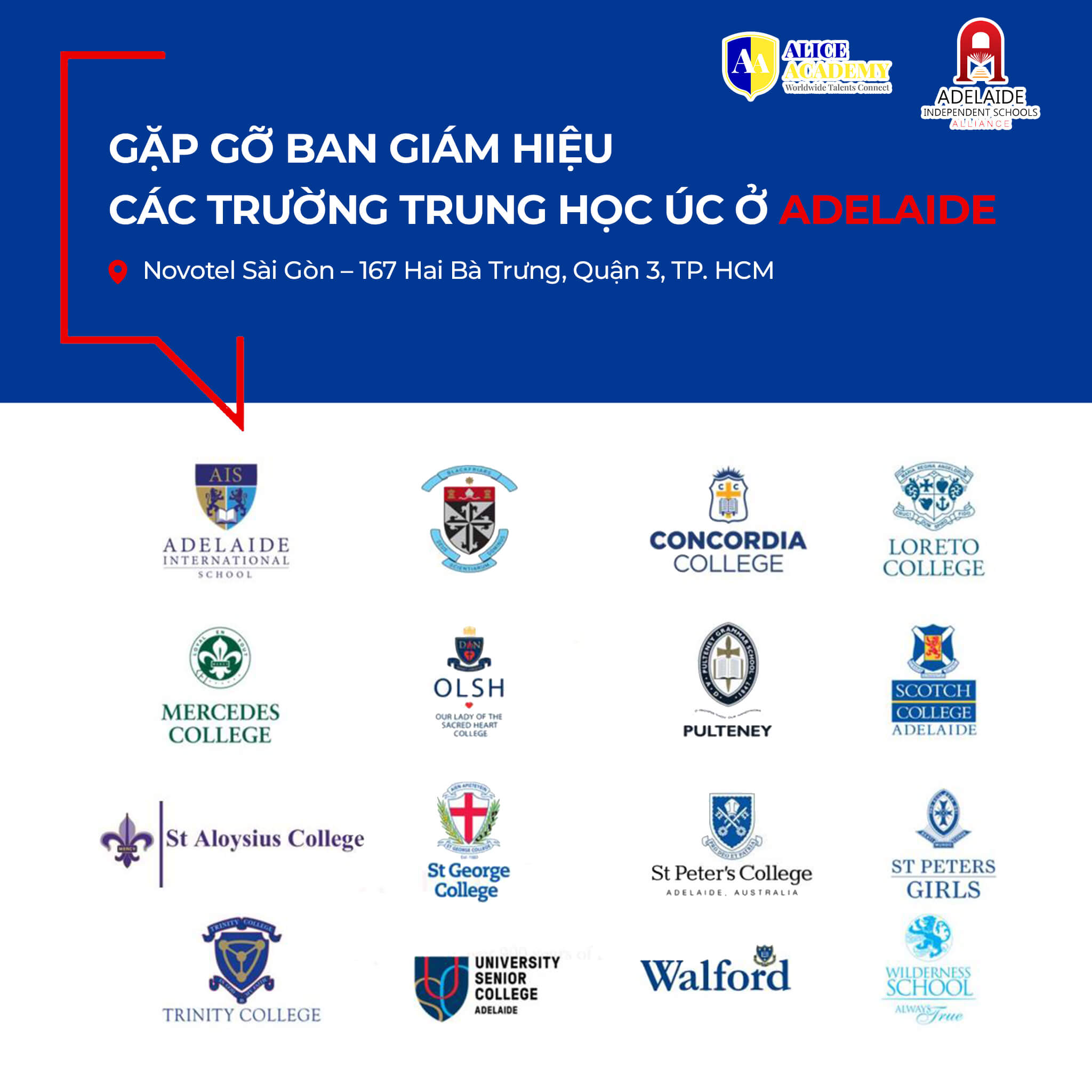 Tháng 4/2018, liên minh Adelaide Independent Schools Alliance chính thức được thành lập dưới sự hậu thuẫn của chính phủ Úc với 13 trường thành viên. Không chỉ tổ chức buổi lễ thành lập hoành tráng tại thành phố Adelaide, liên minh AISA còn tổ chức buổi lễ ra mắt tại Hà Nội (Việt Nam), Thượng Hải (Trung Quốc) và nhiều thành phố trên khắp thế giới. Những buổi lễ giới thiệu tại nước ngoài đều có sự tham gia của Đại sứ quán Australia thường trú tại nước đó.