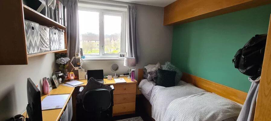 Khu Storthes Hall Park này cung cấp 1368 phòng ngủ với vị trí tuyệt vời. Mỗi phòng sẽ có đầy đủ trang thiết bị và bao gồm hết phí Wifi hay phí trả thêm gì khác, vô cùng dễ dàng để bạn có thể thoải mái lựa chọn size phòng phù hợp với mình. Tại đây, bạn không thể lãng phí bất cứ khoảng thời gian trống nào của mình, từ phòng game, phòng học, phòng xem phim, phòng gym, cửa hàng tiện lợi,…tất cả những gì bạn cần đều có ở Storthes. Hơn thế nữa, chỉ cách trường 15 phút đi shuttle bus với phí rất ít, bạn không cần phải lo lắng về việc đi lại.